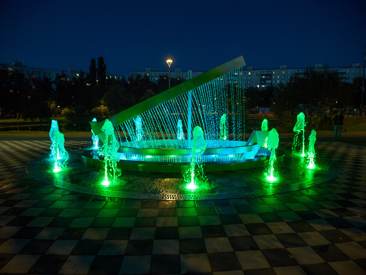Суммарная мощность подсветки фонтана - не менее 1 кВт