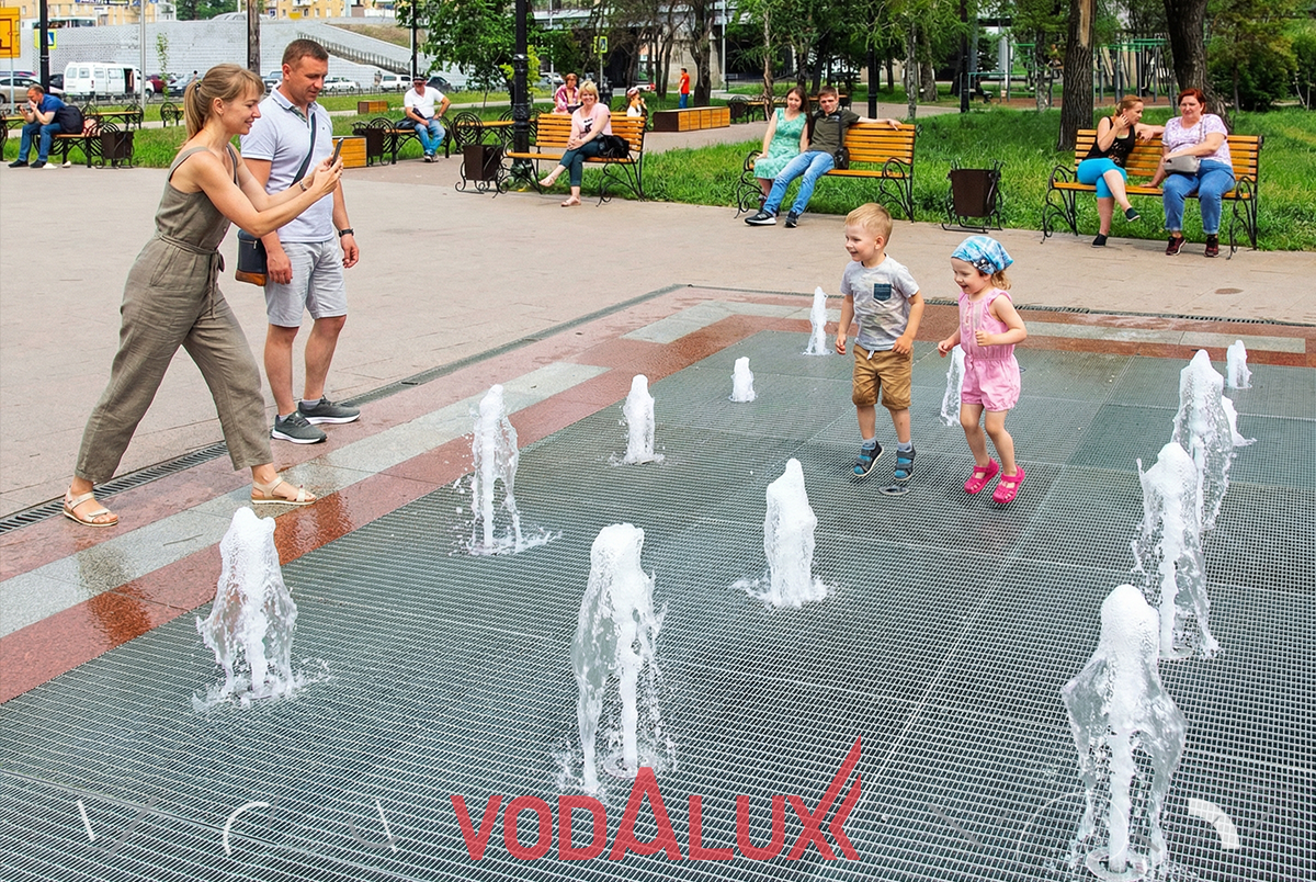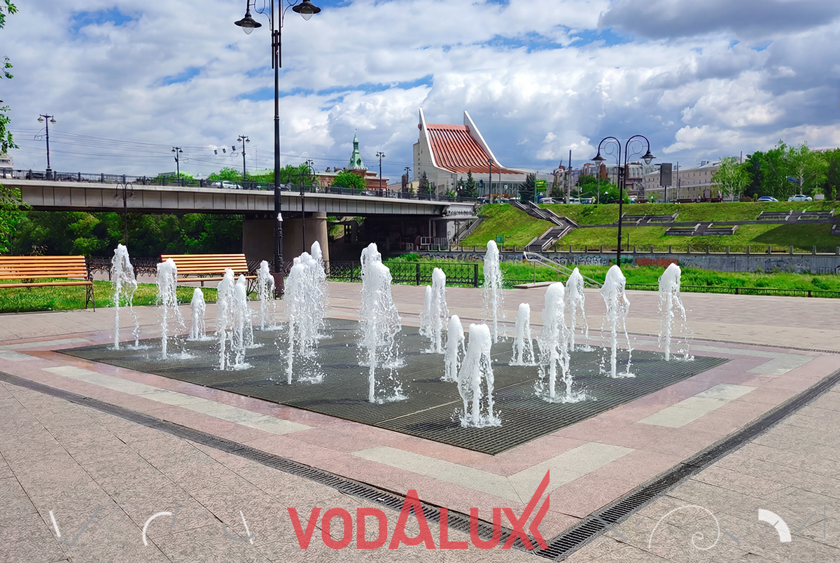 Фонтан — жемчужина комплексного благоустройства набережной Оми по нацпроекту «Формирование комфортной городской среды». Водалюкс обеспечил надёжные комплектующие для цветодинамического объекта, который гармонично вписался в обновлённое пространство которое содержит: новое гранитное мощение, лавочки, опоры освещения, габионы, озеленение.